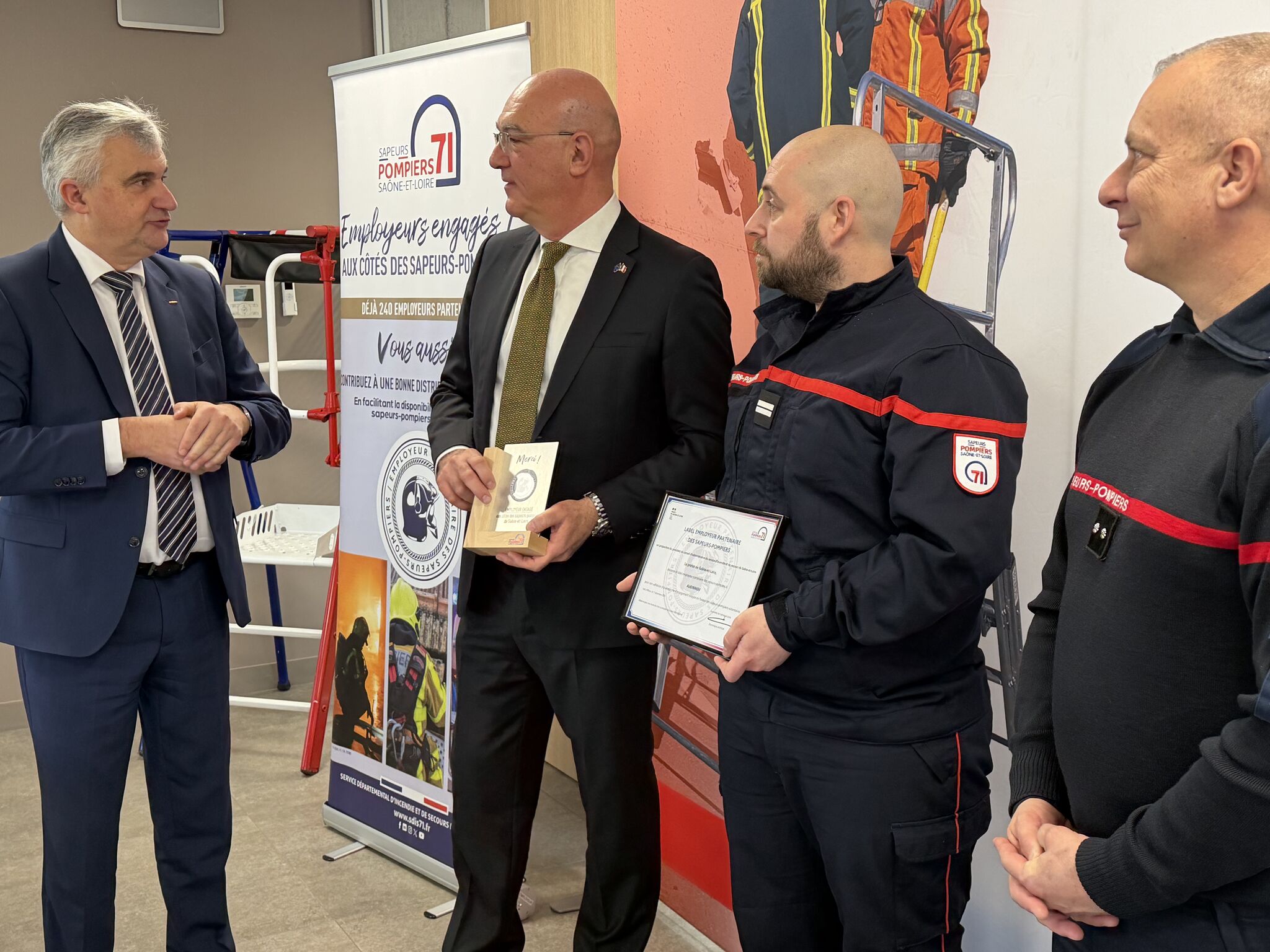 Ce label « Employeur partenaire des sapeurs-pompiers » a été remis à Monsieur Yves BUGY, directeur général de l’entreprise Audinnov, le 28 janvier 2026, par Monsieur André ACCARY, président du conseil d’administration du service départemental d’incendie et de secours de Saône-et-Loire.